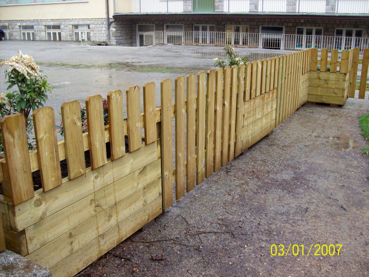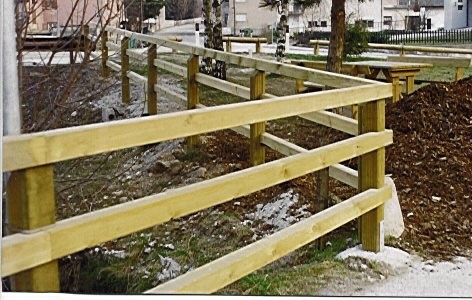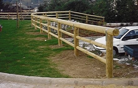Possono essere di pino trattato , larice oppure castagno. Le tipologie sono molte , con pali tondi oppure con quadri e assi, recinzioni per montagna o più eleganti per casa , parapetti o guard rail più robusti o misto acciaio-legno. Posa con la realizzazione di plinti in cls .